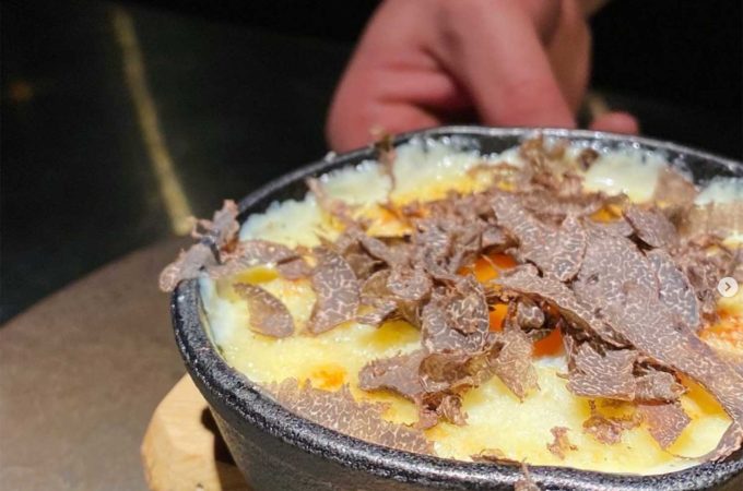 グランドメニューから1品、 “トリュフ卵のオーブン焼”をご紹介いたします。 熱々の卵の上に、お客様の目の前で 黒トリュフをたっ...